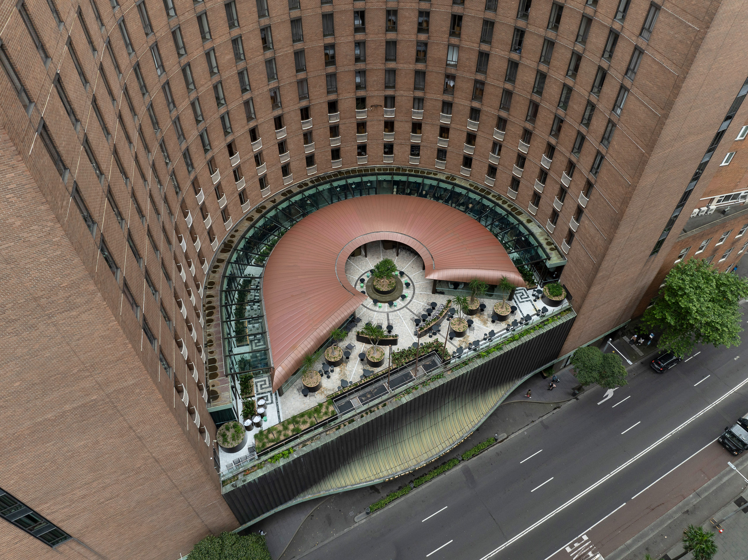 Must be nice to see H&E’s work here so often highlighted within the PR and marketing outreach regarding Sofitel Sydney Wentworth – it’s all about the bar and that canopy.