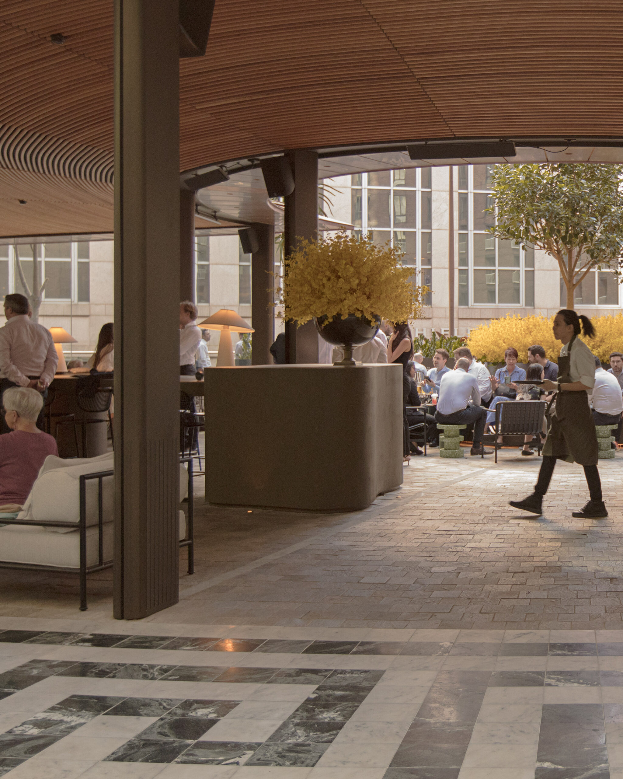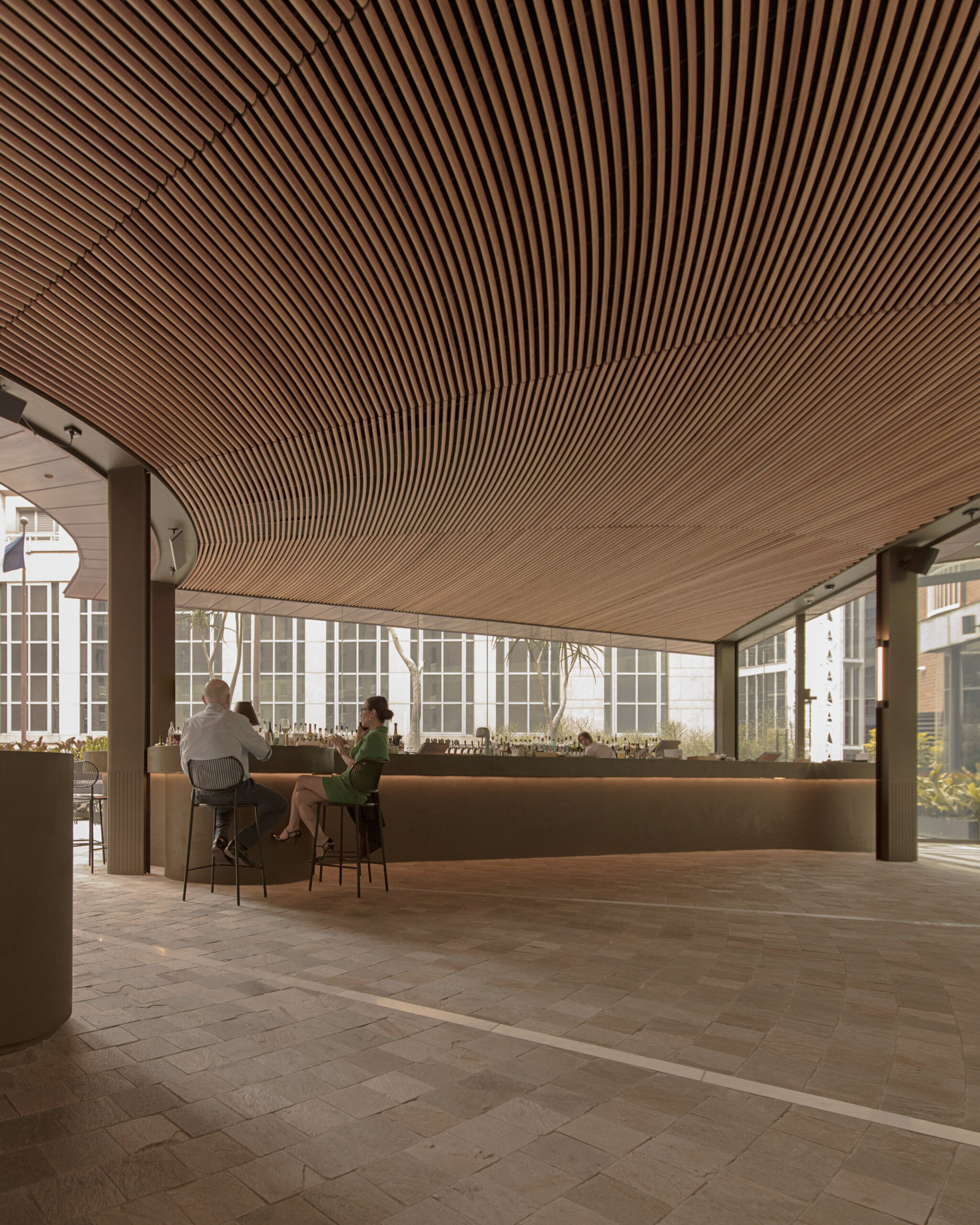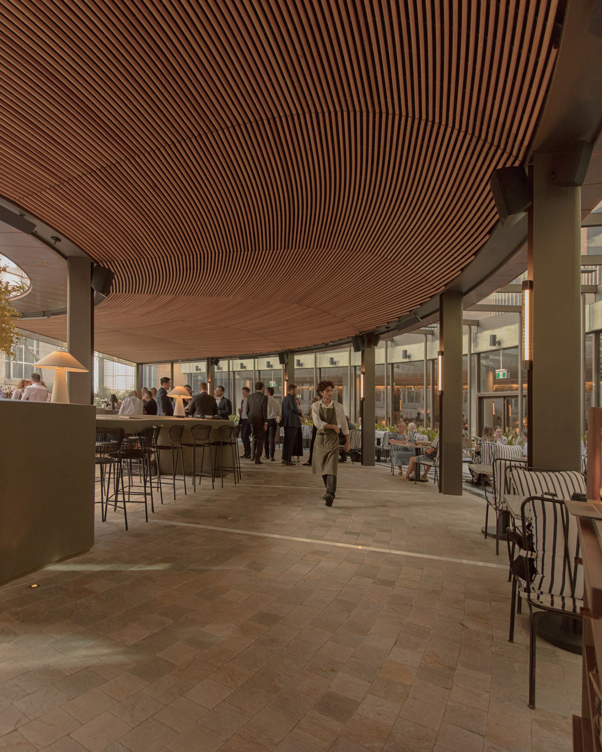 It’ so lovely to see a space with people in it – to see a space where people are enjoying themselves. And I think what makes this even better is that there were issues with that culture when the space was originally created, issues around wind and the environment and the weather. And to come up with a vision and a plan of how to technically mitigate those things and then deliver something quite poetic that solves those issues… Well, to then see people using it, particularly on shitty, windy, wet days where they would never have been able to operate that business, but today there’s still 180 people enjoying themselves, that’s beautiful.